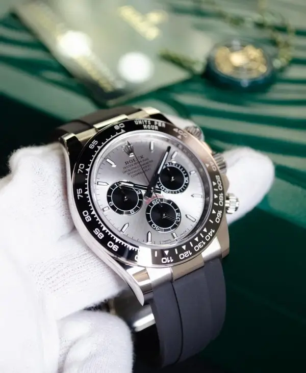 The Rolex Daytona Grey Black features a refined grey dial paired with a bold black design, delivering a modern and premium luxury look. Crafted for those who appreciate elegance with a sporty touch, this timepiece is perfect for both formal occasions and everyday wear.